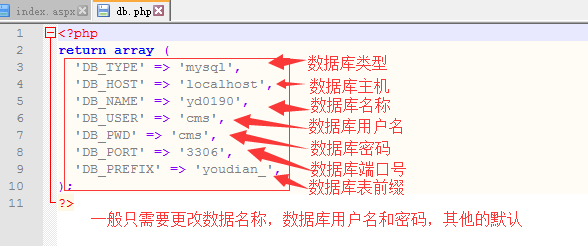 2 目錄APP/CONF/DB.PHP 手動的填寫數(shù)據(jù)庫信息