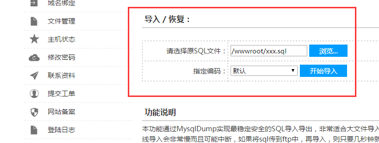 3 虛擬主機(jī)導(dǎo)入SQL文件(DATA目錄下面 sql文件)