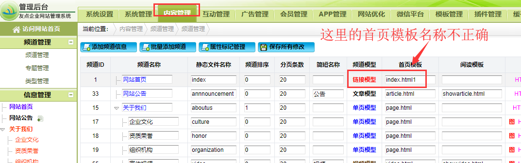 模板文件不存在,原因可能是模板文件缺失或者被刪除導(dǎo)致,也有可能是首頁模板的靜態(tài)靜態(tài)文件名被修改【