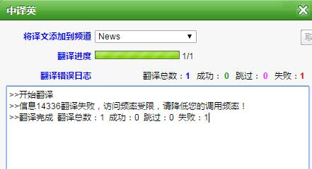 后臺對接好百度翻譯接口之后,選擇對應的信息開始進行翻譯,出現(xiàn)如下圖的提示