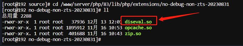 phpinfo()輸出,可以看到組件diseval已啟用,表示配置成功