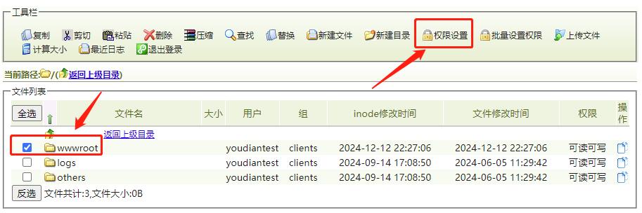 wwwroot,點擊工具欄的【權(quán)限設(shè)置】,選擇【