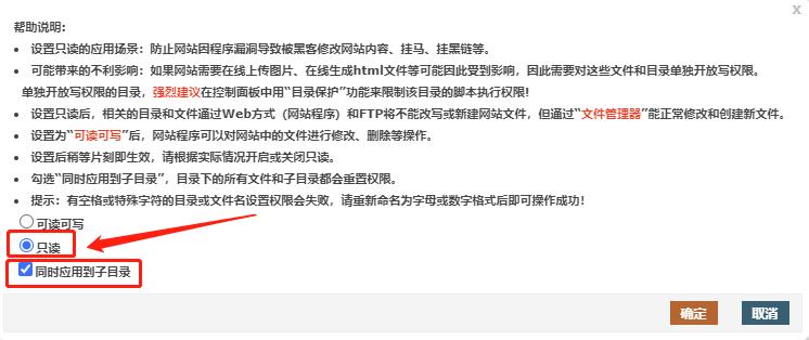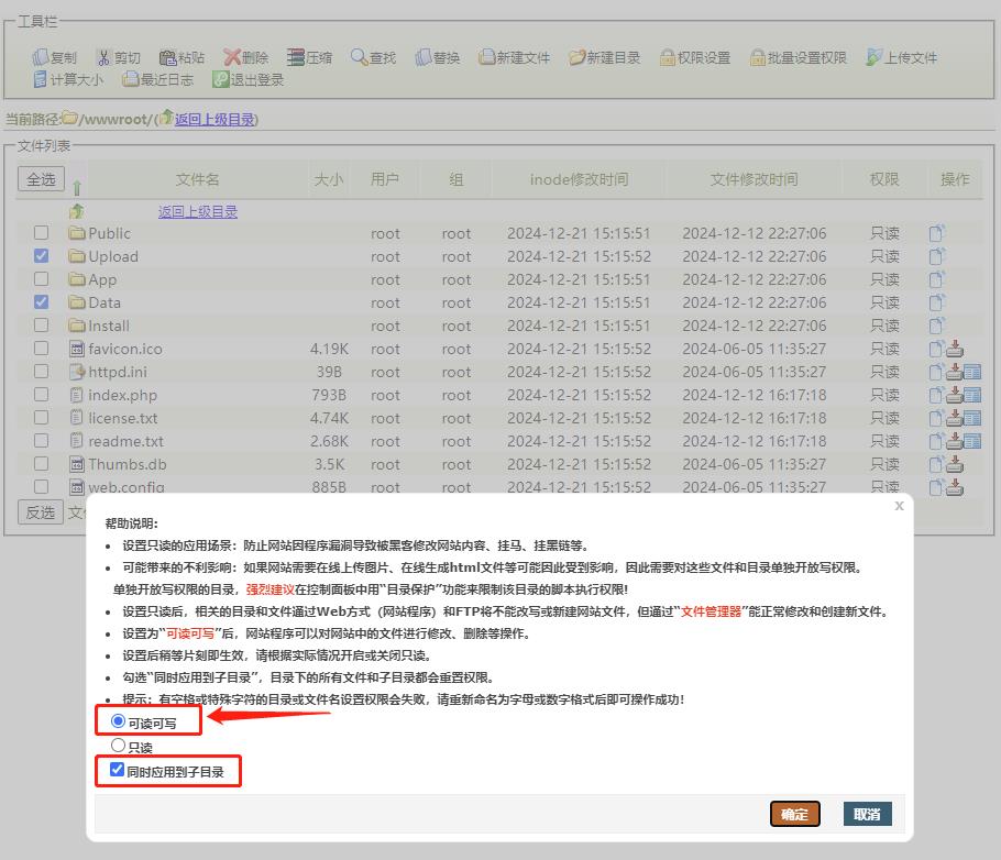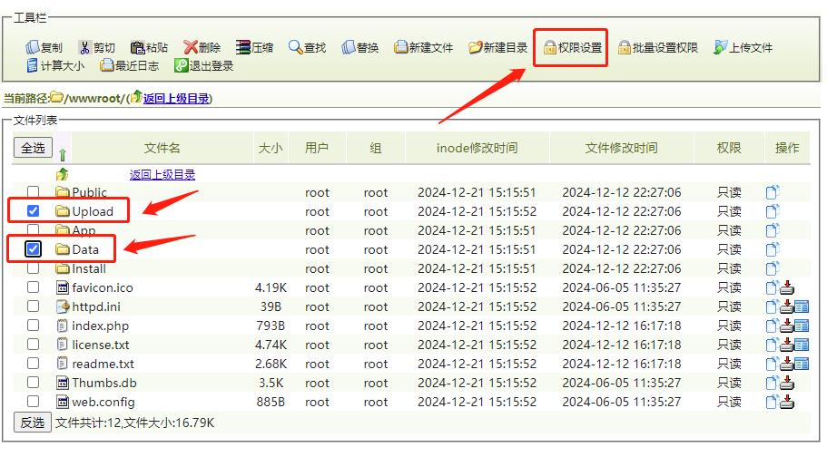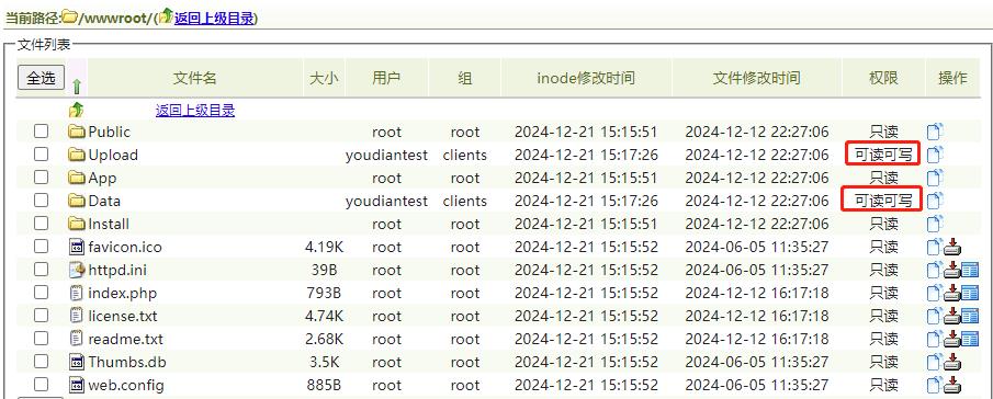 將網(wǎng)站根目錄設(shè)置為只讀,然后將Upload和Data目錄設(shè)置為可讀寫權(quán)限