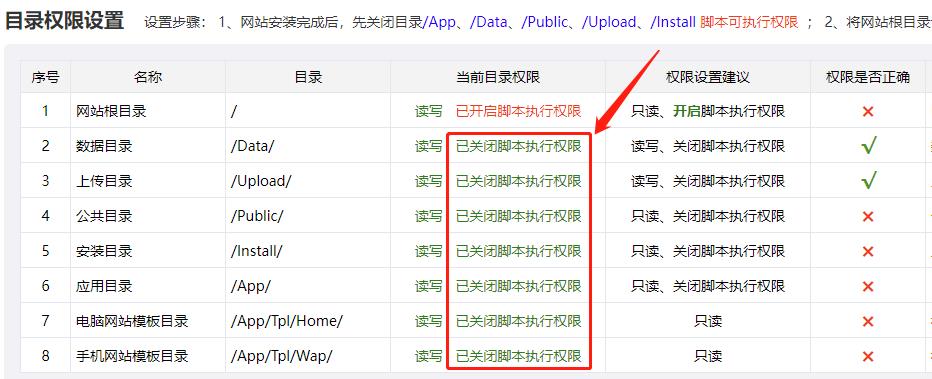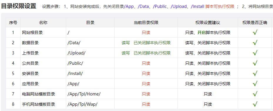 設(shè)置要求:需要禁止網(wǎng)站根目錄下的所有子目錄(Public、Upload、App、Data、Install等)的腳本執(zhí)行權(quán)限
