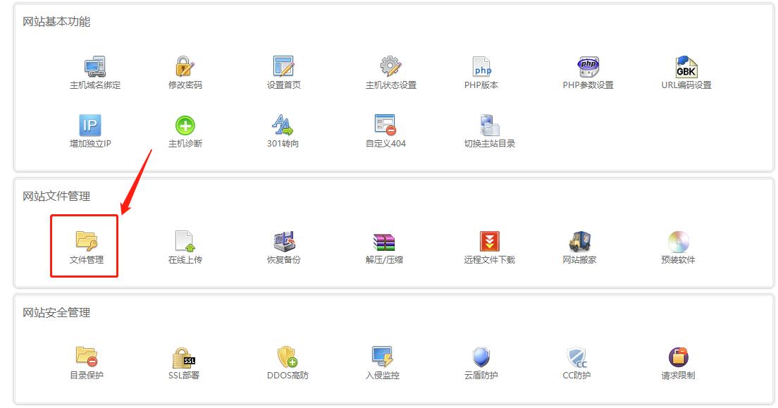 找到虛擬主機【文件管理】功能,并打開