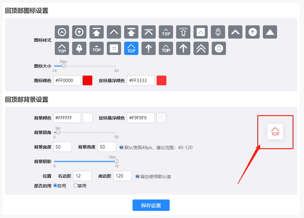 如何設(shè)置和修改TOP返回頂部按鈕樣式?