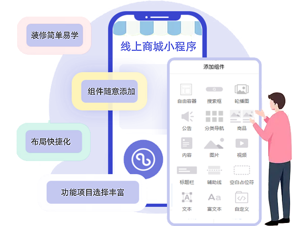 拖拽式裝修,自由布局 快速搭建線上專屬賣貨系統